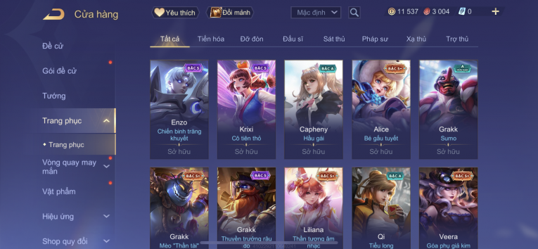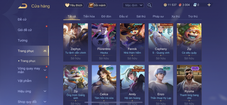 Sale 50% , ttt lkr lili wave 600k , ryo sumurai 200k , alan tuyết sơn 800k , lili anh đào 150k . Nhiều skin 20k